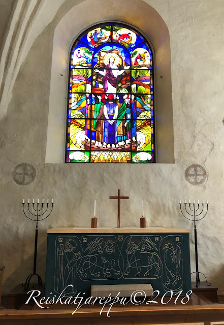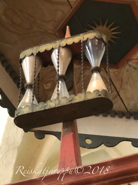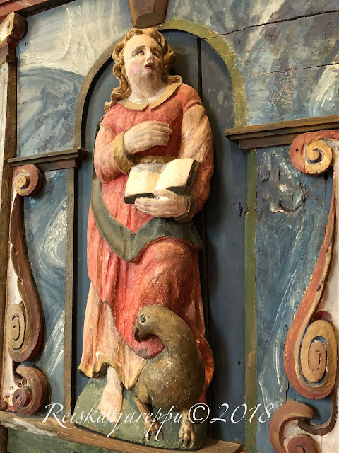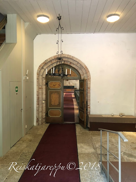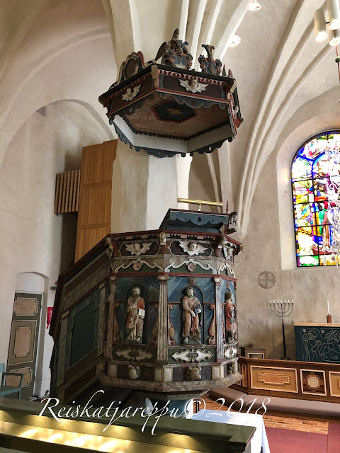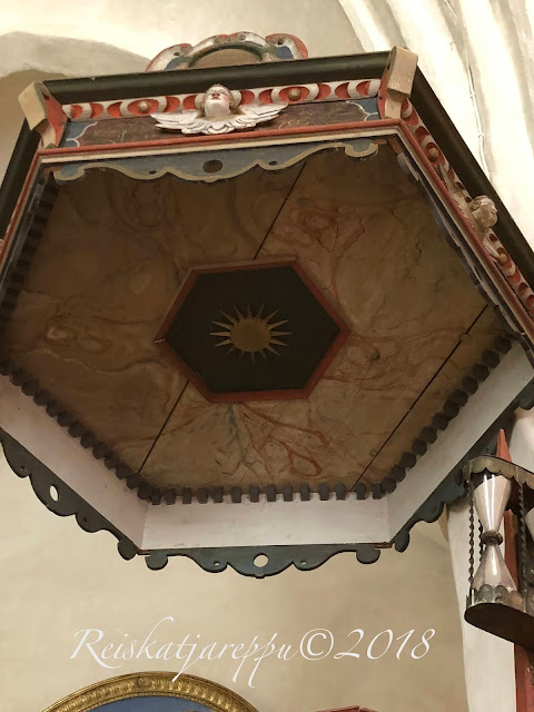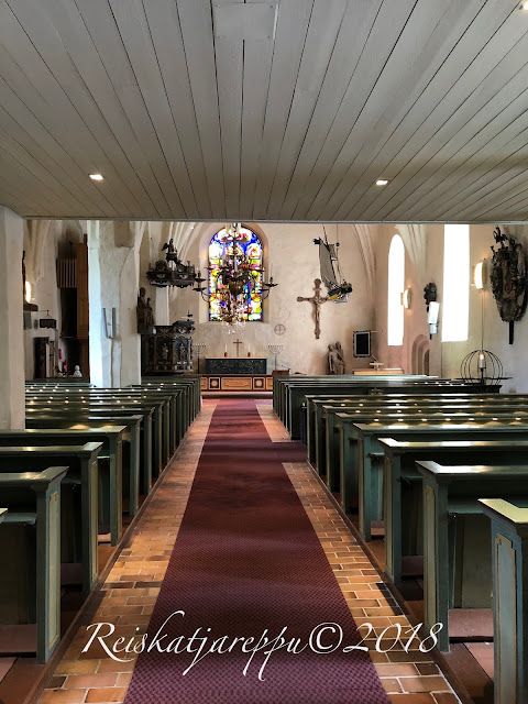 Yllätykseksemme kirkon ovi oli auki ja ystävälliset, vapaaehtoiset kirkkoa opastavat eläkeläiset toivottivat meidät tervetulleeksi Pohjan kirkkoon. Jeee! Riemulla ei ollut rajoja, kun suupielet korvissa pääsimme tutkimaan ja kuvaamaan kirkkoa. Niin monet kerrat olemme kirkkoa kierrelleet ulkopäin, mutta harvoin olemme osuneet pääsemään sisälle kirkkoon.