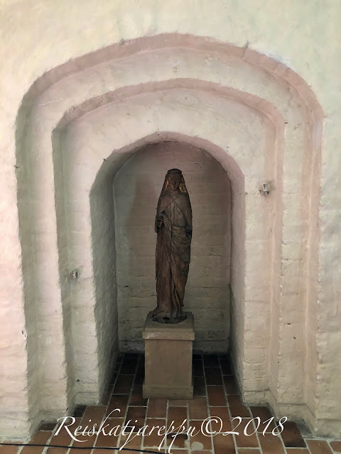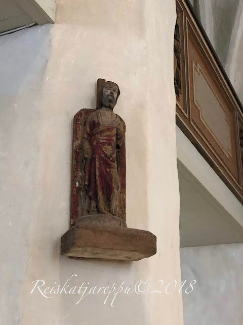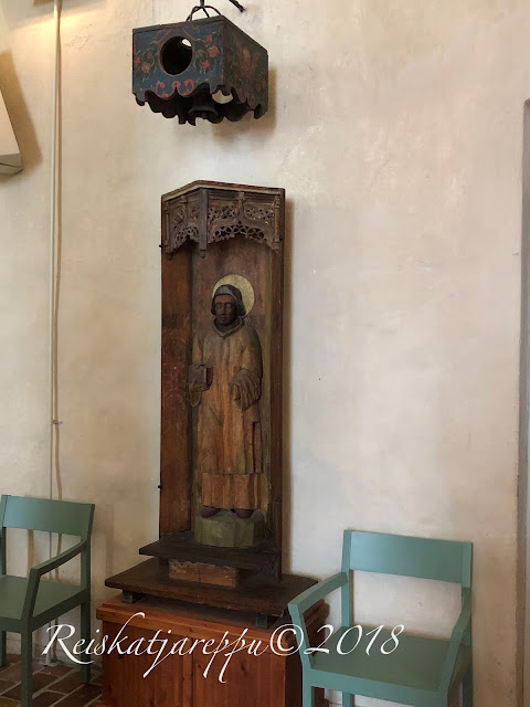 Alttarikaapissa, jos kirkosssa on ollut sellainen, siellä säilytettiin useampia veistoksia kaappien sisällä. Tässä kirkossa ei ollut semmoista näkyvillä.