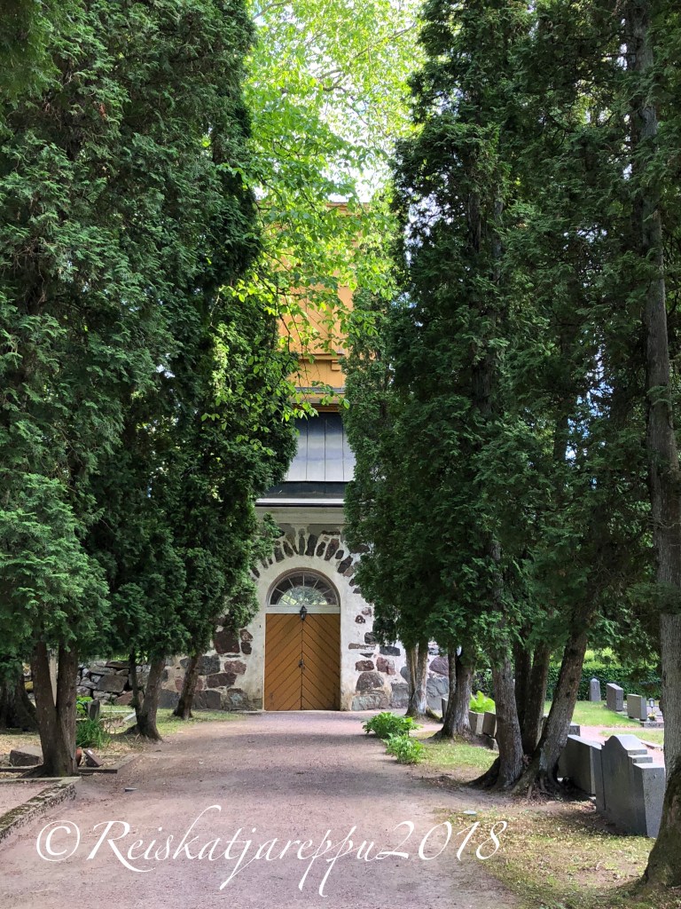 Päädyimme kirkkojen aukioloajan perusteella matkaamaan Salon kirkoille, eli Perniöön ja Halikkoon. Matkoihimme kuuluvat edelleen ne mutkat ja lähdimme ajamaan rannikkotietä pitkin Perniöön. Kuis ollakaan matkalle varrelle osui Pohja. Päätimme katsastaa Pohjan kirkon, kun emme olleet varmoja olimmeko käyneet siellä aiemmin. Kirkon eteen saapuessamme oivalsimme heti, että juu, tuttu kirkko, kun von Julinin suvun komeat sukuhaudat olivat hautausmaalle tulevan kirkkotien molemmilla puolilla.