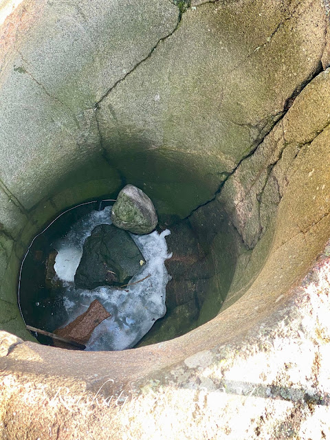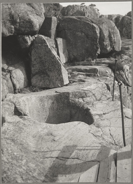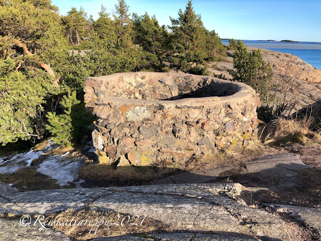 Maljan vierellä oli graniittiset istuimet, pöytä ja kanuuna. Ne on siirretty kalliolle 1908.