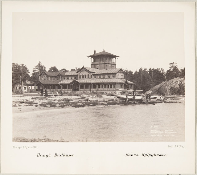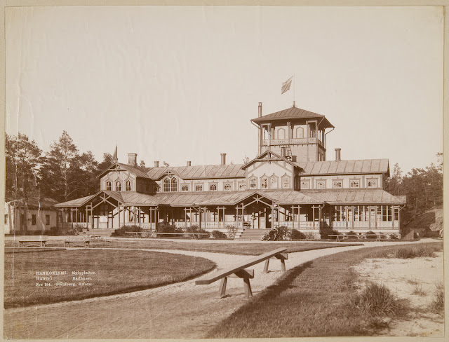 Tutkittuani Hangon Casinon alkutaipaletta, löytyi tämä kiva kuvasarja Hangon Casinon kasvamisesta tämän päivän loistoon. Samalla yllätykseksi tuli, että Casinon vierellä oli ollut hieno kylpylärakennus ja Plagenin uimaranta oli kuulunut kylpylän puistoalueeseen. Aivan upeaa historiaa, sääli vain, että kylpylärakennus on tuhottu. Finnasta löytyi monia kuvia kylpylävieraista. Voi vain kuvitella heidän askeltavan hiekkarannalla ja kallioilla. Nauttivan männikön tuoksusta, josta voi aistia suolaisen meren vivahteen. Aurinkoa ja lepoa. Uimista, pelaamista tai muita harrasteita. Hyvää ruokaa ja ihania hoitoja. Pientä flirttiä ja yhdessäoloa.
