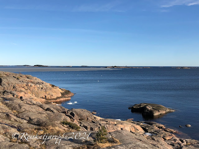 Näin tuli käytyä nauttimassa Hangon keväisestä helmikuun viimeisen säästä. Tuli paljon uutta ja mielenkiintoista tietoa Hangon upeasta kylpylähistoriasta. Ajoimme Mannerheimintietä Neljän Tuulen tuvan parkkipaikalle vielä ihailemaan meren rannan kauneutta. Aurinkoisen hyvällä mielellä jaksoi lähteä tulevaan arkeen.