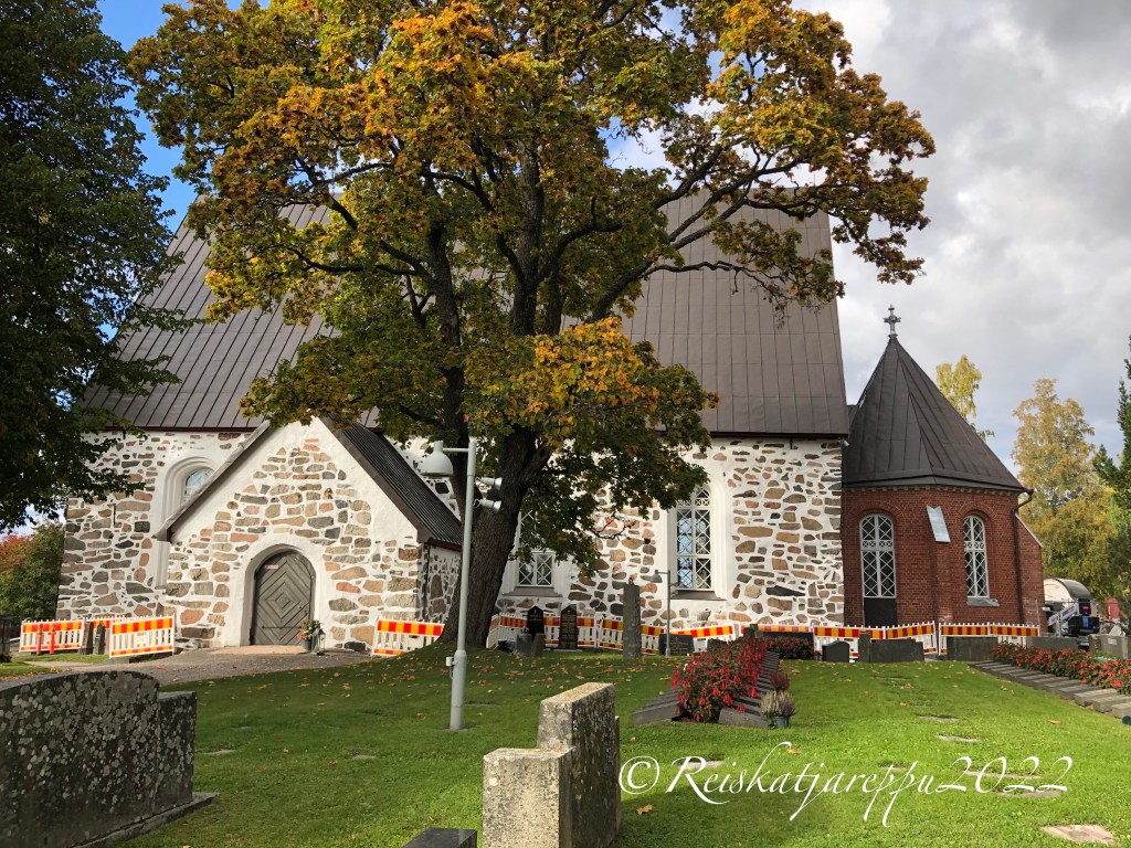 Matkamme jatkui Nautelankoskelta kohti Liedon linnavuorta. Matka mutkaan tehtiin Liedon kirkon kautta. Olemme ahkerasti kiertäneet näitä keskiaikaisia kirkkoja, tämä vaan oli jäänyt välistä. Ja tämä ei ole kuin kymmenen kilometriä Turusta lounaaseen. Voi, miten upealla paikalla Aurajoen rannalla on monen lietolaisen viimeinen leposija.