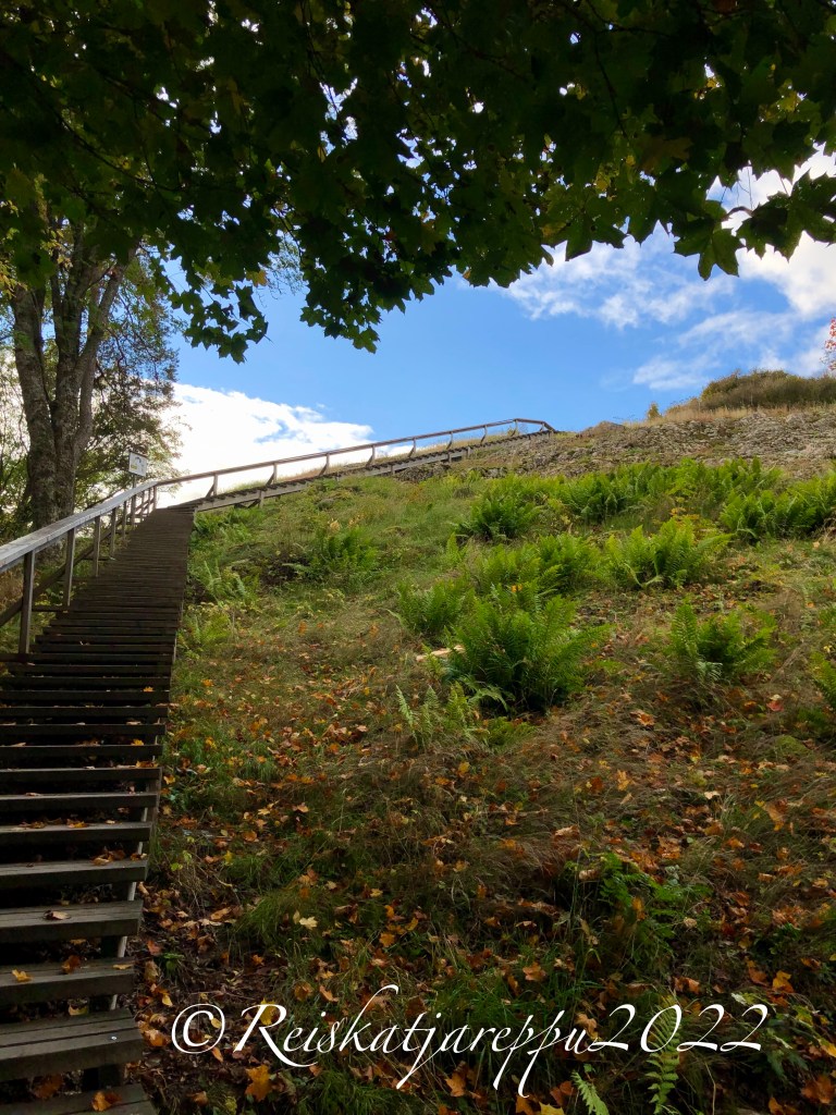 Linnavuorelle nousu portaita pitkin ja laella suhteellisen helppo kulkea