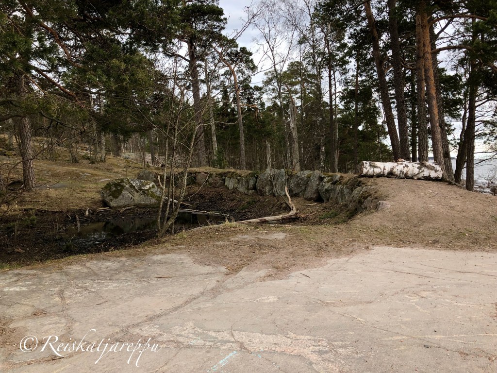 Seuraavaksi tulee Vaskiniemi, jossa on ensimmäiset sodanaikaiset jäännökset. Krimin sodan aikana rakennettiin (1853-1856) Lauttasaareen kolme kanuunapatteria.