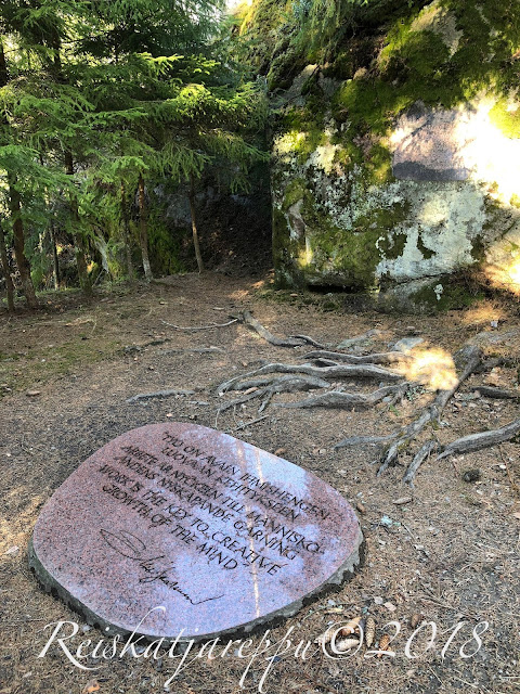 Eliel Saarisen hautamuistomerkki sijaitsee rinteen alla suuren kiven juurella kuusien ympäröimänä. Herman Gesellius ja Loja Saarinen on haudattu myös tänne. Paikassa oli jotain taianomaista, hiljaisuus, luonnon tuoma rauha ja viimeisten jäiden sinfonia, joka vienosti kantautui hiljaisuuden läpi reissuajien korviin.
