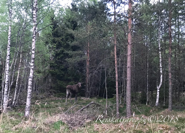 Retken korvasi kuitenkin emostaan vieroitettu hirvi, joka oli tiellä seisomassa, kun lähdimme sillalta Medvastin tielle. Se juosta jolkotti auton edessä ja hyppäsi metsään meitä tuijottamaan, kun yritimme kuvata sitä auton ikkunasta.
