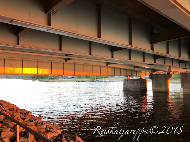 Mottorivene hiljaa ajeli kohti siltaa ja jännittyinenä seurasimme veneilijän matkaa. Kumartumalla hän esti päänsä osumasta sillan palkkeihin.