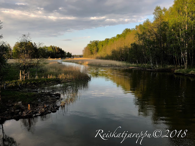 Pettyinä mietimme mihin sitten menemme, kun emme niitä kotieläimiä kohdanneet. Välähti, että Medvastö voisi olla lähellä ja neiti Navi ilmoitti kohteen olevan todella lähellä. Takaisin Hirsalantietä, josta kohta olikin tienviitta Medvastö. Morstjärdintie johdatti meidät sillan yli Medvastön saaren puolelle. Veneitä oli rannoilla ja kaunis ilta-auringon paiste sai meidät melkein pysähtymään rannalle ottamaan kuvia. Jatkoimme kuitenkin matkaa. Saavuimme toiselle kapealle sillalle ja pysähdyimme katsomaan edessä häämöttävää ilmoitustaulua ja olimmekin saapuneet Medvastön luonnonsuojelualueelle.