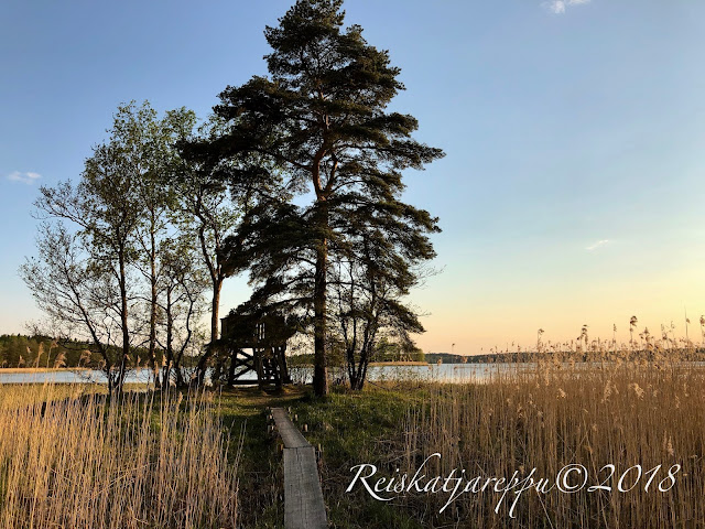 Hymy tuli huulille, kun lintutorni tuli näkyviin, se oli niin pieni. Pieni muihin verrattuna, joihin olemme nousseet. Lintutornista näkyi jopa pari lintua, lokki joka pyydysti kalan ja lensi pois kala suussaan ja joutsen, joka lipui rauhallisestii pyrstösulat korskesti kohollaan. Kala hyppäsi saalista pyydystämään, joita meidänkin ympärillä riittävästi lenteli.