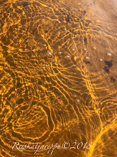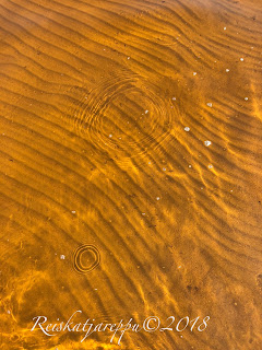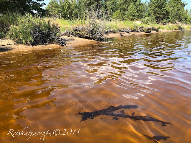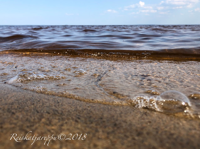 Vesi oli kirkasta ja kävellessä rantahiekassa pohjasta pulppusi vettä kuplina pintaan. Pintaan muodostui kivoja kuvioita. Samoin pohjassa näkyi mukavan hiekan muodostamat raidat. Kävellessä syvemmälle hiekka muodostaa dyynejä vedessä. Välillä on matalaa, sitten syvenee ja tätä jatkuu vaikka kuinka pitkälle.