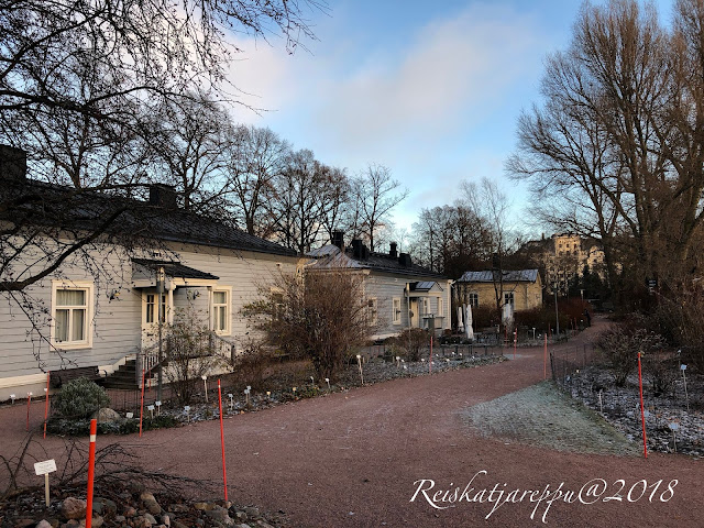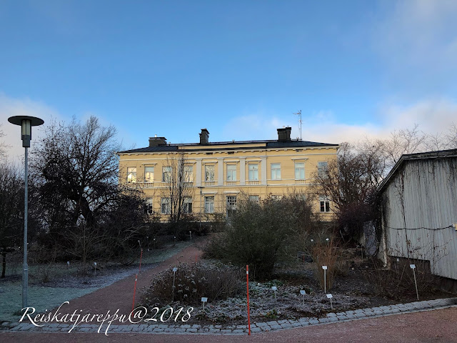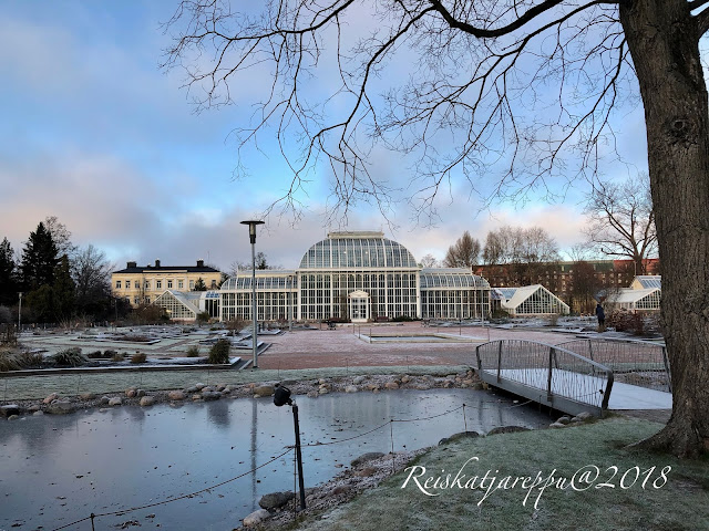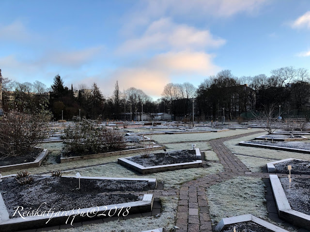 Sillan ylittäessä saavuttiin Kaisaniemen yliopiston puutarha-alueelle. Kasvien jättäessä kesän, puutarha muistutti pienoisgolfrataa istutuslaatikoiden muodostaessa kuvioita. Voi vaan kuvitella miltä puutarha näyttää kesän vihreyden ja kasvien värikkyydeen loisteessa.