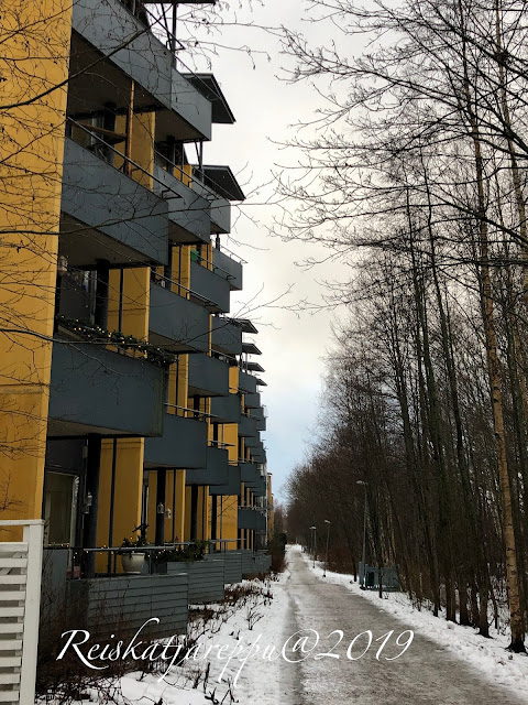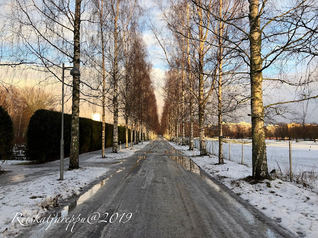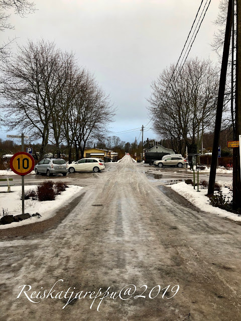 Jännää oli vain kävellä kun emme tienneet mitä vastaan tulee. Näkymäämme peitti pitkältä matkalta korkea kuusiaita. Kuusiaidan sisältä paljastui puutarhapalsta-alue. Sitä vastapäätä joen rannalla oli Talin sauna. Saunaa emme menneet katsomaan, kun tie sinne oli alamäkijohdannaista ja liukkaan näköistä.