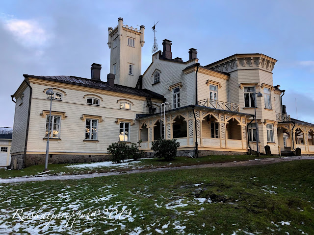 Olimme saapuneet Talin kartanolle. Taivas selkeni ja antoi meille hienot puitteet tarkastella kukkulalla seisovaa kartanoa ja sieltä aukeavaa golfkenttänäkymää. Ja miten hieno koivukuja johdattaa kulkijat kartanolle. Koivukujan päätä koristavat muhkeat kivipaadet, joissa on todennäköisesti ollut kartanon portti.