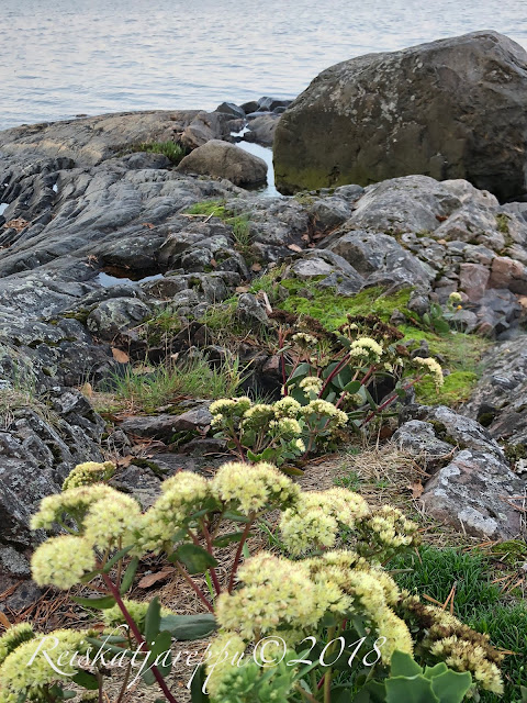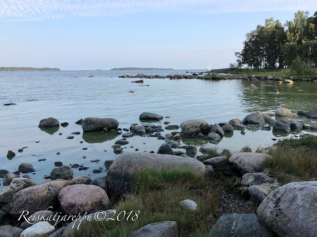 Jatkoimme Uutelantietä hiekkatietä, jota pitkin pääsimme parkkipaikalle lähelle Skatan tilaa, Sieltä alkoi luontopolku. Ensimmäinen pisto polulta olikin rantaan, jossa pääsimme kohtaamaan luonnon ja se toisen ääripään, eli Vuosaaren satama-alueen, jonka äänet kantautuivat vettä pitkin korviimme. Tässä olikin ihmettelemistä kerrakseen näin suuren kontrastin kohdatessa.