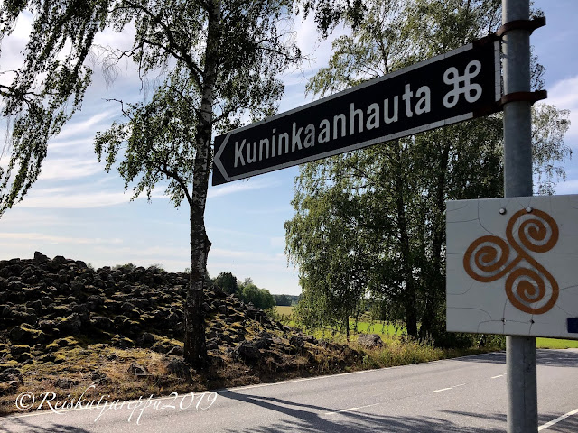 Jatkoimme matkaa Porin seudulta kotiinpäin. Krissellä oli puhelin kädessä ja hän tapansa mukaan googlea selaili. Yhtäkkiä hän hihkasi, tuolla on Kuninkaanhauta, mikä, mikä Kuninkaanhauta. Sehän selvisi viimeistään, kun käänsimme auton ja lähdimme katsomaan Kuninkaanhautaa. Kyseessä on Pohjoismaiden suurimpiin kuuluva röykkiöhauta, kylässä nimeltä Panelia. Hauta oli heti tien varressa ja kävimme ihailemassa hautaa ja haudan kokoa.