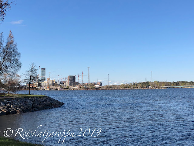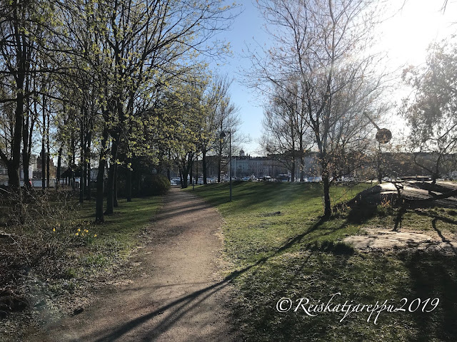 Lopulta Liisankatua pitkin saavuimme päämääräämme Tervasaareen. Kylmä tuuli saatteli meidät sinne. Samoin kävelijät, juoksijat ja koirien ulkoiluttajat. Aurinkoinen ilma oli saanut viileästä tuulesta huolimatta ihmiset ulkoilemaan ja nauttimaan ulkoilmasta.