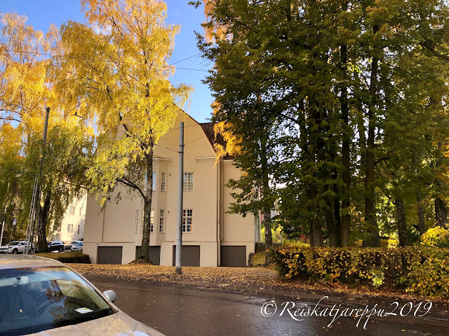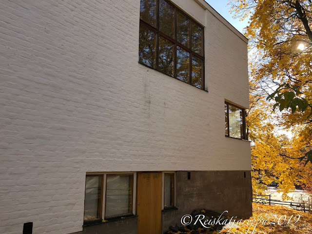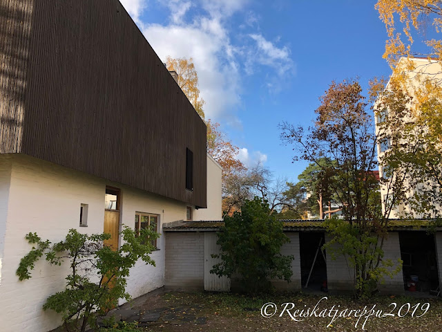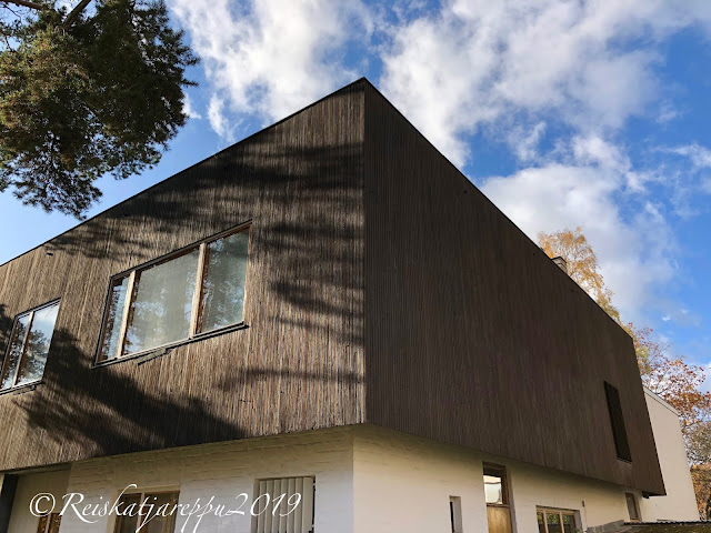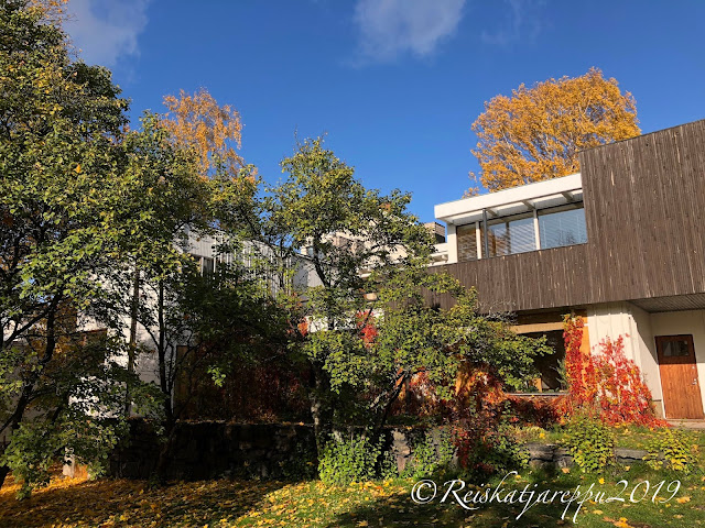 Luulemme, että tämä on se katsotuin, jos ei katsotuin, niin toiseksi katsotuin, eli Riihitie 20 Alvar Aallon kotitalo, Villa Aalto. Tutustumiskierrokset taloon olisivat olleet tiettyyn kellonaikaan, mutta neuvoimme amerikkalaisia turisteja ja itse kiersimme kuvaamassa taloja ulkopäin. Emme halunneet käyttää aikaamme kauniina päivänä sisällä oloon.
