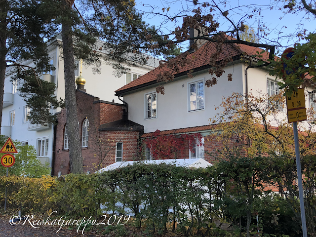 Jatkoimme matkaamme tutustumaan Munkkiniemen pensionaatin rakennukseen.