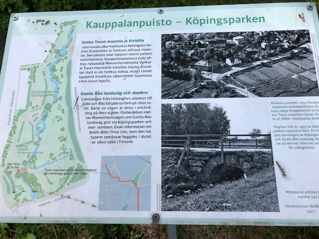 Kivisillan kupeessa opastetaulu kertoi sillan ylittäneestä tiestä. Eli nykyiseltä Mannerheimintieltä Vanhalle Turun maantielle Kauppalanpuiston kautta.