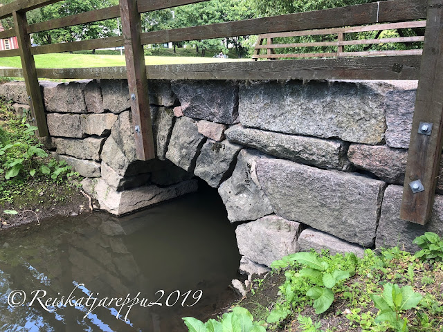 Matkamme siis jatkui Haagaan Kauppalankadun varrella sijaitsevaan Kauppalanpuistoon. Puistossa kulkee pusikoitunut Haaganpuro eli entinen Mätäpuro, nimi on muutettu 2011 sekannusten välttämiseksi Mätäjokeen, joka laskee Isoon Huopalahteen. Seurasimme jokea ja saavuimme kivisillalle.