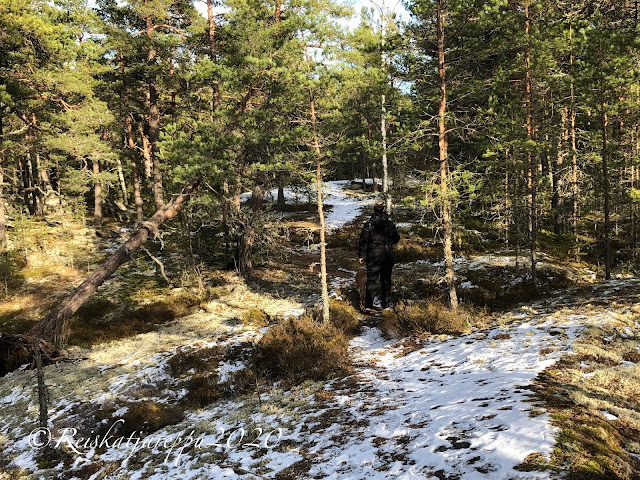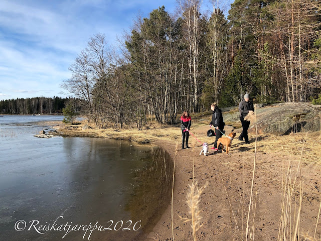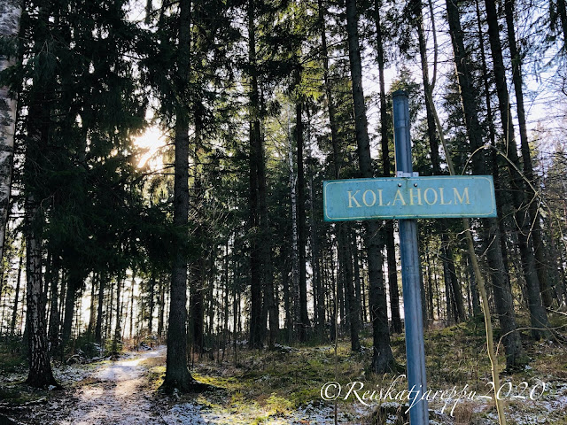 Korona pauhaa pääkaupunkiseudulla ja ihmiset valtaavat virkistys- ja ulkoilualueet paetakseen koronaa. Me päätimme lähteä vähän pienemmälle ja hiljaisemmalle Uudenmaan virkistysalueelle (Uuvi) Kolaholmeniin, joka sijaitsee Tammisaaren itäpuolessa sisäsaaristossa. Porukka kasaan, Krisse, Neiti N ja Neititeini sekä koira ja pikkukoira. Eväät, makkarat ja kertakäyttögrilli, joka takasi sen, että saimme kevään aloitusmakkarat.