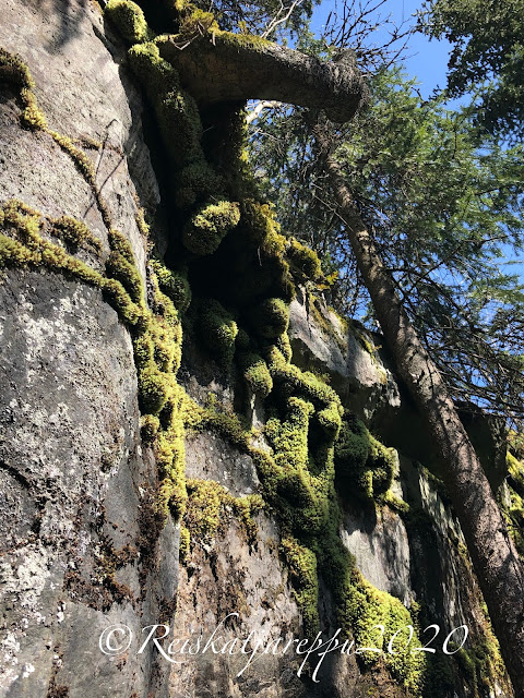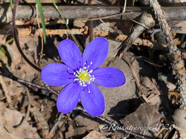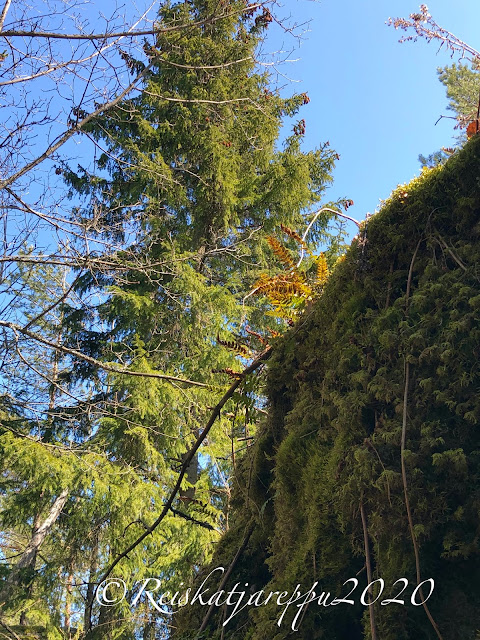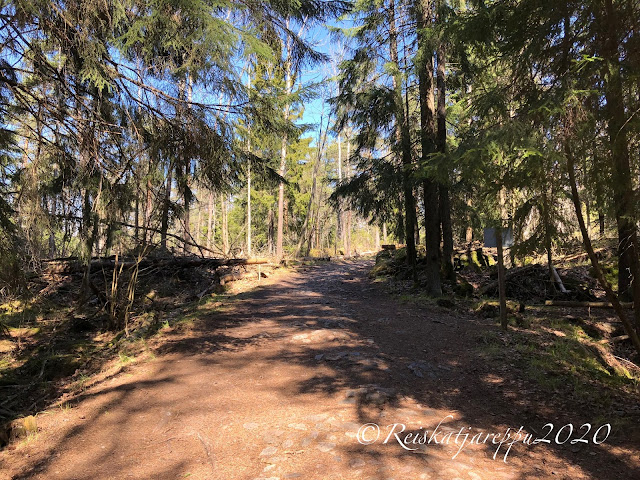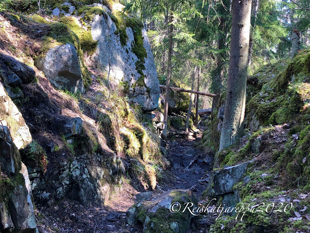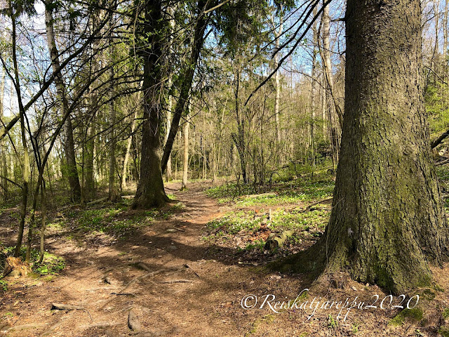Tällä polulla teki mieli vaan kävellä hiljaa. kuunnella rastaiden ja muiden lintujen musisointia. Tuoksutella kevättä, puiden keskustelua toisilleen, narinasta päätelleen sitä oli paljonkin. Antaa ajan pysähtyä ja nauttia vain olemassa olostaan.