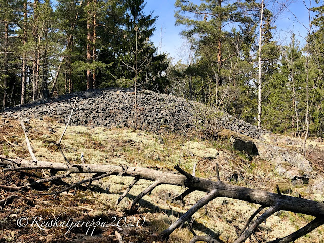 Jatkoimme kulkuamme kallioilla ja eteemme tuli ihmisen tekemiä kivikasoja, jotka olivat tulleet kallioihin hakatuista juoksuhaudoista. Nämä nyt eivät olleet esihistoriallisia hautaröykkiöitä, kuten tavallisesti. Alkuun niitä ihmettelimme, mutta tutkiessamme asiaa lisää, se selvisi.