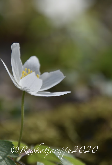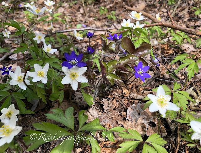Viehättävä lehtomaisema avautui eteemme, valkovuokkojen kukkiessa valtoimenaan ja sinivuokkojen yrittäessä kurkkia valkovuokkojen välissä.