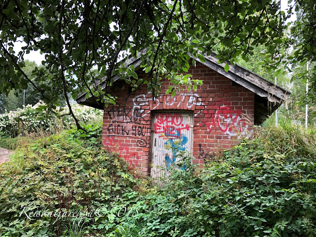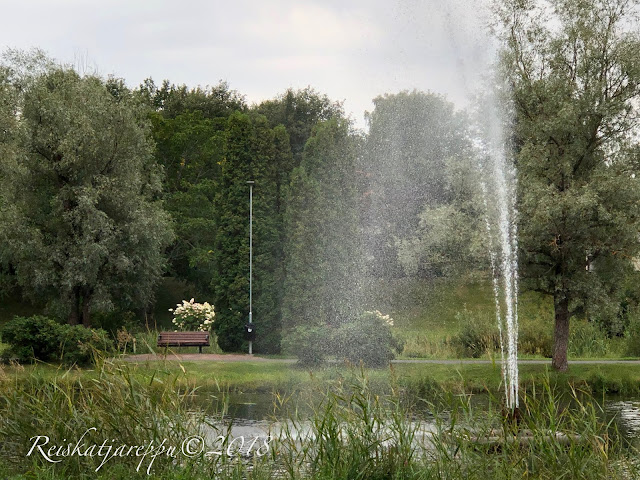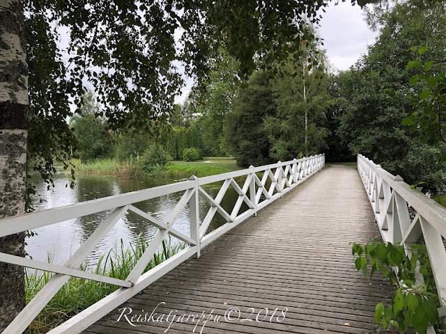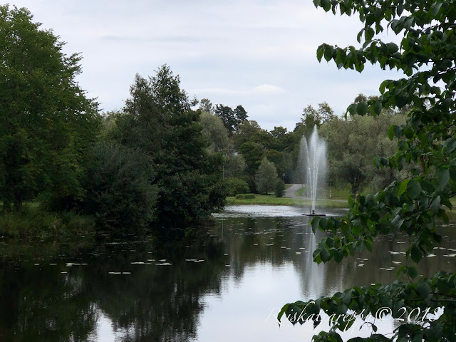 Matkamme jatkui Karjaalle, jossa olimme käyneet aiemminkin, mutta silloin kaatosateen yllättäminä istuimme autossa nautiskellen välipalaamme Pumppulahdenpuiston laitamilla. Nyt päätimme katsastaa tienoota ja kävellä kauniissa puistossa. Google-kartta kertoi myös pienestä saaresta, jonka luulimme ensiksi olevan vastarantaa.