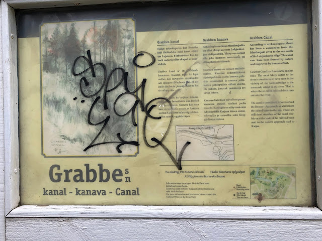 Karjaan läpi kulkee Mustionjoki ja joen pohjukassa on tämä pieni Pumppulahden saari. Kaunis puinen silta johdattaa kulkijan kauniille saarelle, jossa suurten puiden varjoisat katveet kutsuvat kulkijan lepäämään puiden alle nauttimaan hiljaisuudesta ja rauhoittamaan mielensä. Mutta yllättävintä oli se, että törmäsimme taas Grabbeen, nyt Grabben kanavaan. Päivän retkemme nimi olisikin voinut olla Grabben jalanjäljillä.