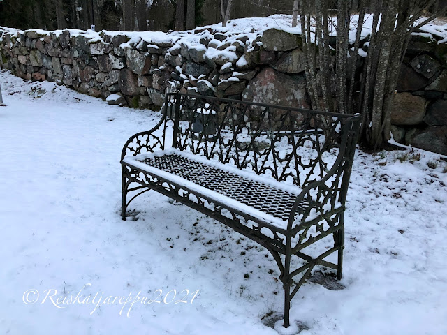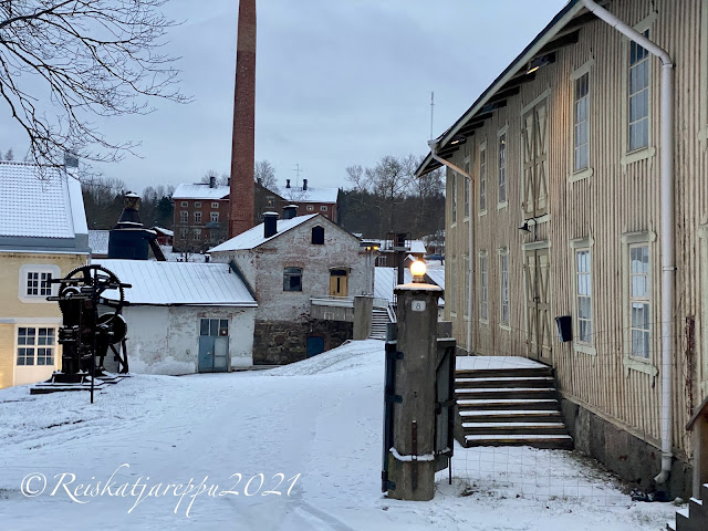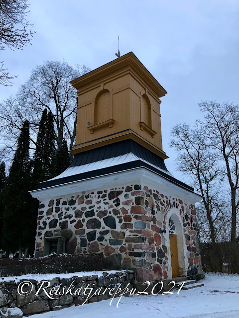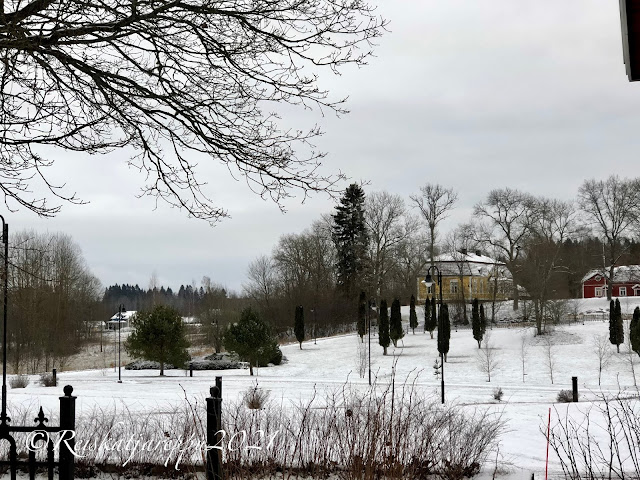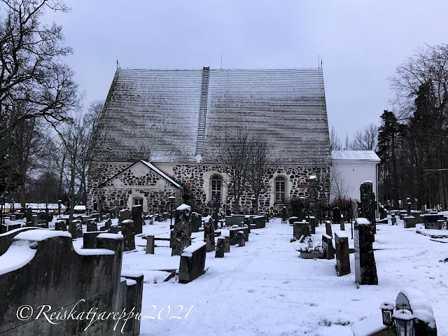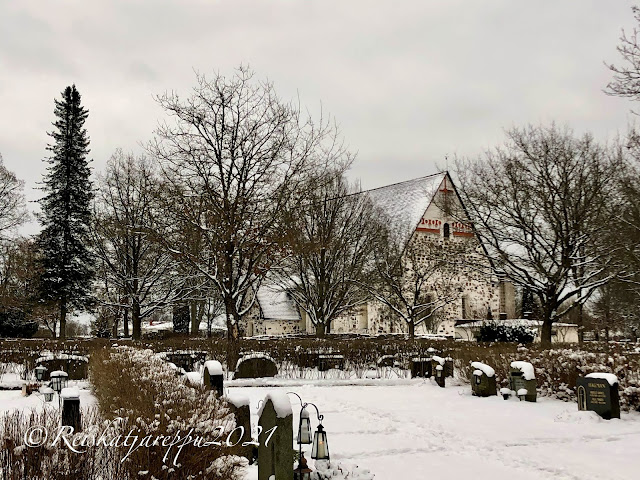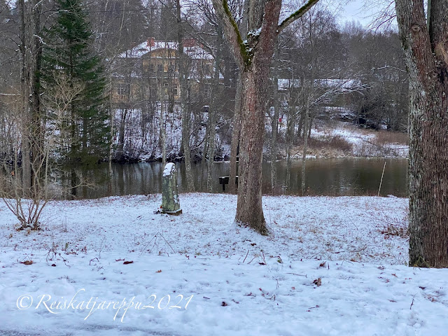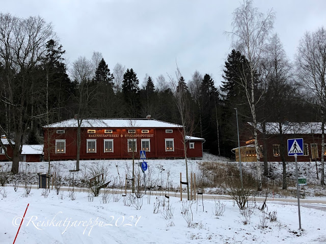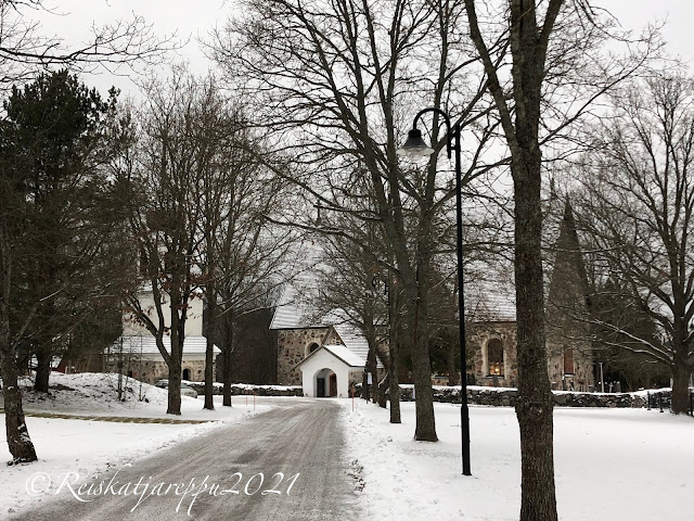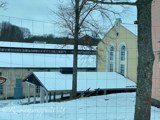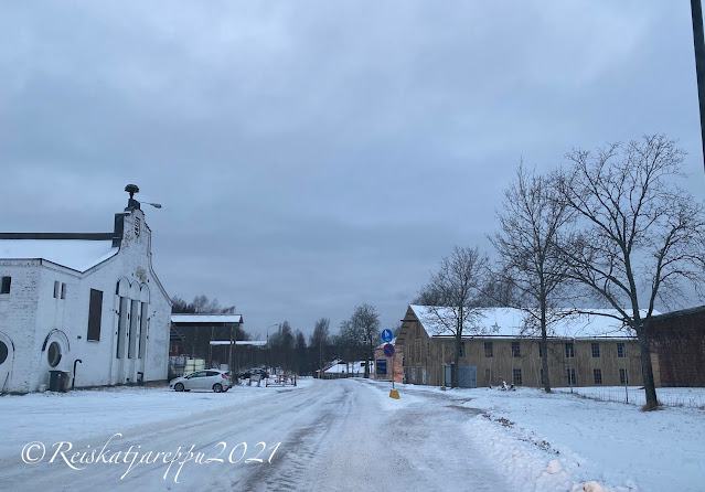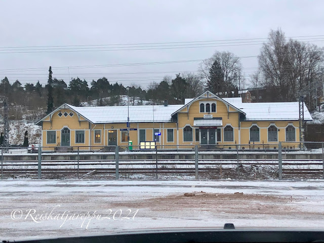 Kahvien jälkeen matkattiin lämpöisin mielin Karjaalle, keskustan kautta Karjaan kirkolle. Tuttuja maisemia, silti niin erilaisia lumen vallatessa näkymän. Keskustasta löytyi uusia teitä ja uutta katseltavaa vanhoilta huudeilta. Aivan mahtavaa. Kuten Karjaan asemarakennus ja veturitalli.