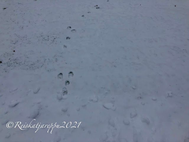 Pupusen jäljet johdatti kirkolta poispäin. Minneköhän meidän jäljet johtavat ja mistä löydämme itsemme päivän aikana. Emme käyneet tapaninpäivänajelulla, joten tämä loppiasajelu korvasi sen. Saimme vielä nauttia joulunajan tunnelmista, koristelluista pihoista ja valoista. Loppiaiseen joulu loppuu vai miten se meni.