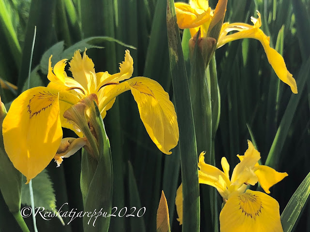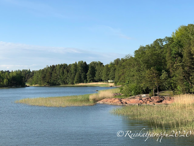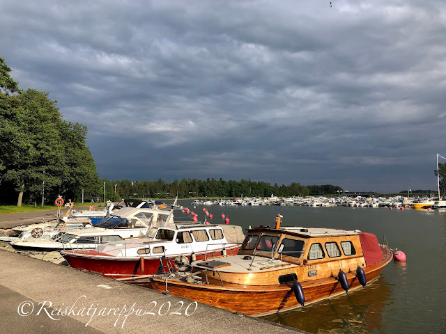 Taivaalla näkyi tummia pilviä, mutta ne kiersivät meidät ja saimme ulkoilla ilman sateen uhkaa. Kävelimme rantaa pitkin ja tuoksuttelimme meri-ilmaa, katselimme hanhien touhuja, joutsenten uiskenteluja ja kesäistä kukkien loistoa.