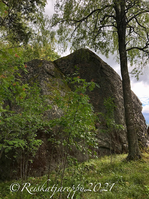 Kiersimme lohkareen ympäriinsä. Melko jyrkkäreunainen se oli, joten emme edes yrittäneet kiivetä sen laelle, vaikka jostain kohtaa sinne olisi päässyt.