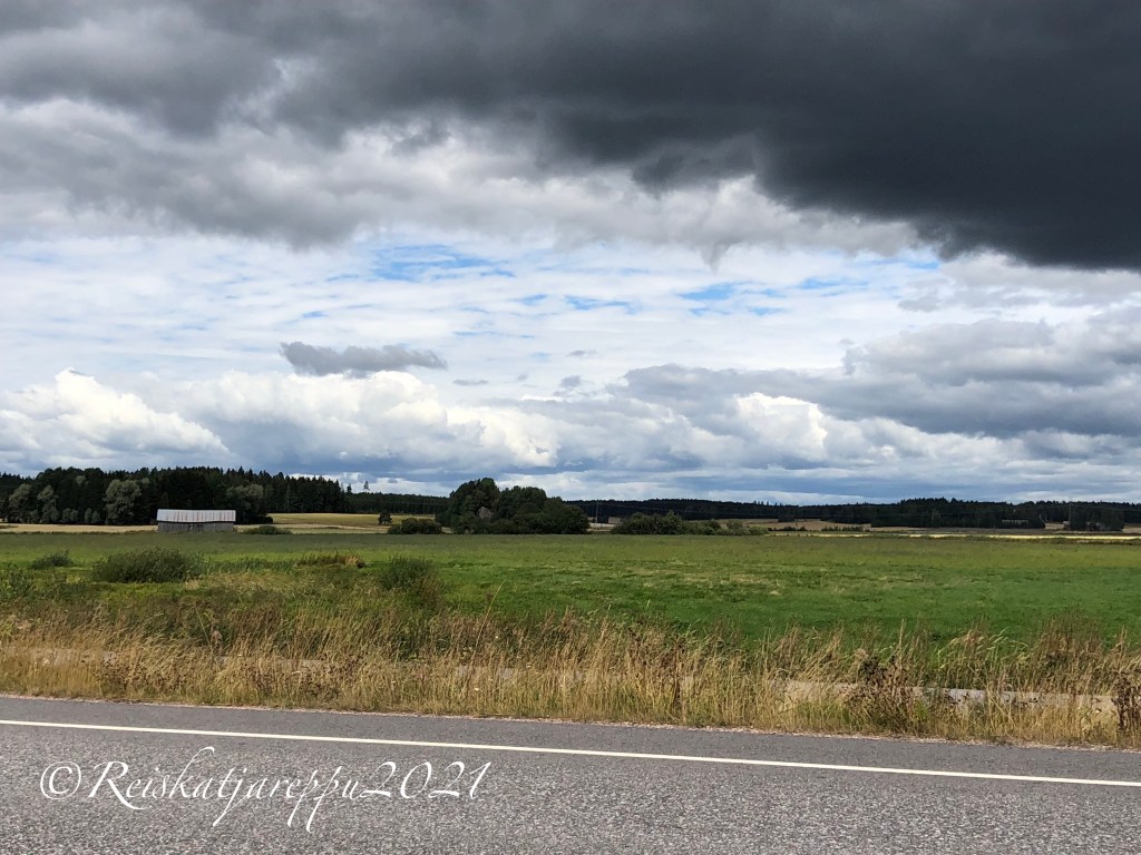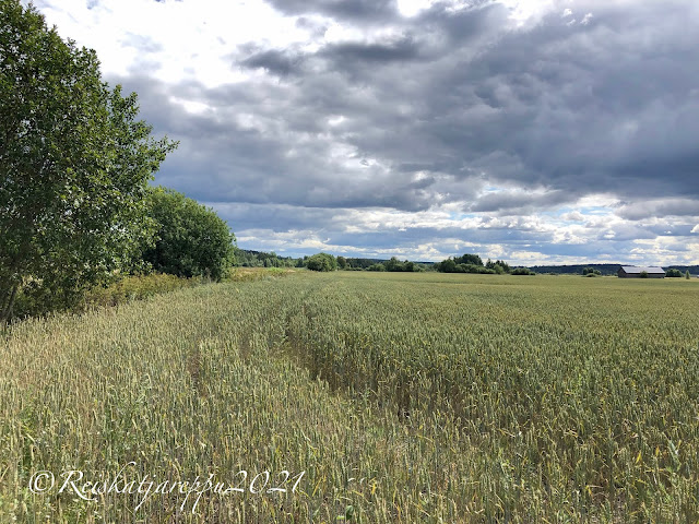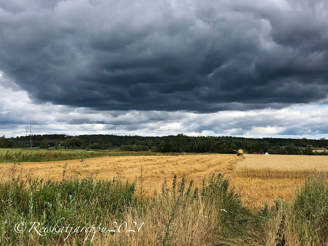 Kiva tuulen henki hönkäili kulkijoiden niskaan. Ei tuntunut yhtään pahalta. Helteiden jälkeen tuuli tuntui suorastaan nautinnolliselta ja virkistävältä. Vaikka mustia pilviä kulki taivaanrannassa, sadetta ne eivät antaneet.