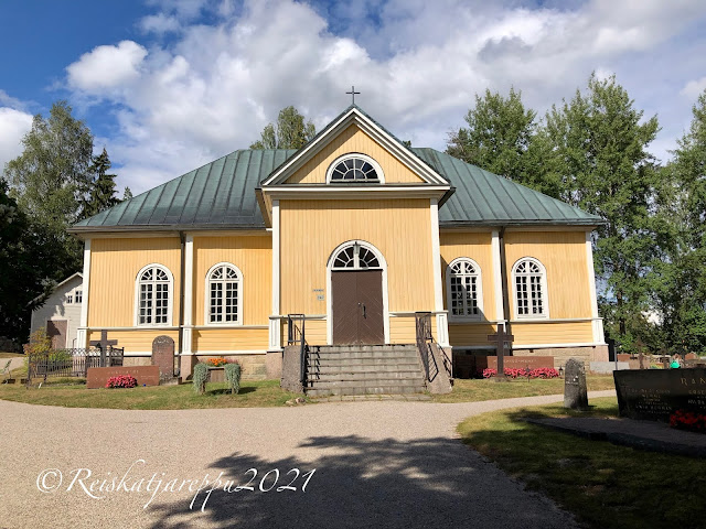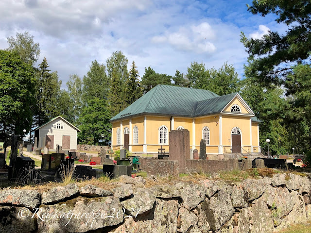 Kun meillä meni kauemmin kuin ajattelimme Hermolanvahalla, niin jätimme Salon käynnin toiseen kertaan. Ajelimme Muurlan kirkolle. Vielä on pari Varsinais-Suomen kirkkoa ja kylää näkemättä ja tämä niistä yksi. Viehättävä mäkinen maasto johdatti kirkolle, joka olikin aivan kylätien varrella. Keltainen kirkko on rakennettu 1836 ja seisoo ylväänä pieni risti katollaan kivimuurin ympäröimänä.
