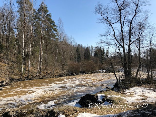 Pitkästä aikaa lähdimme auringon saattelemana reissuun Krissen kanssa. Mikäs on otollisempaa aikaa keväällä käydä katsomassa kosken kuohuja. Krisse löysi netistä Lahankosken Pornaisilta. Suuntana Pornainen oli meille uutta aluetta.
