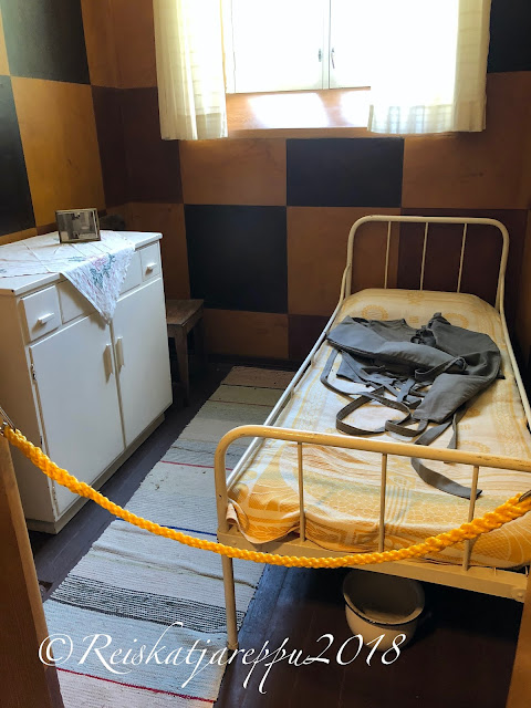 Palasimme takaisin kirkon viileydestä ja hautausmaan haikeasta olosta entisen sairaalaan pihalle. Tiloissa on kahvila ja siellä on kattava tarjoilu nälkäisille matkalaisille. Me myöhästyimme laivasta ja istuskelimme puiden varjossa syöden eväitä. Mielen veti hiljaiseksi onnettomien ihmisten kohtalo. Kokemus saarella oli mielenkiintoinen. Onneksi päivä oli niin kesäinen ja aurinkoinen, että se antoi iloa päivään. En tiedä mikä olisi ajatusmaailma ankealla, sateisella säällä.