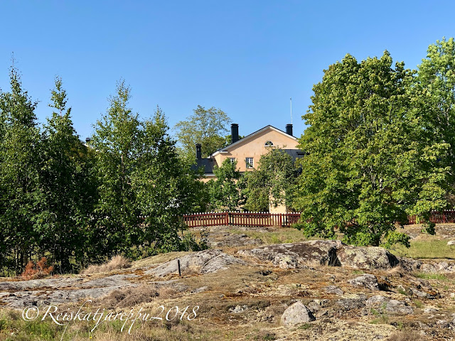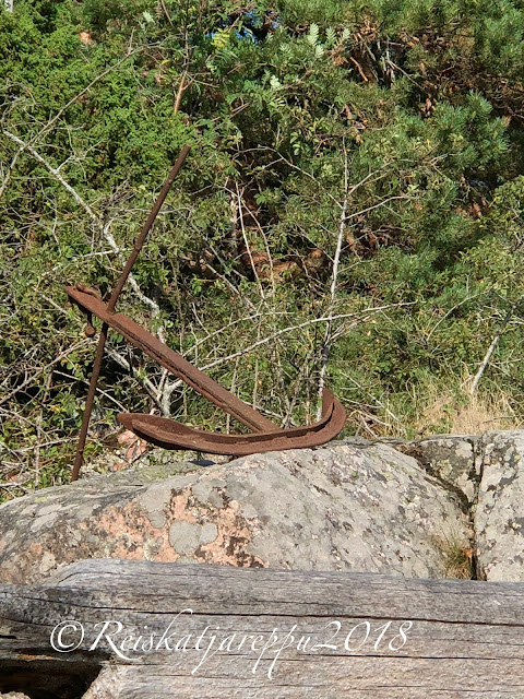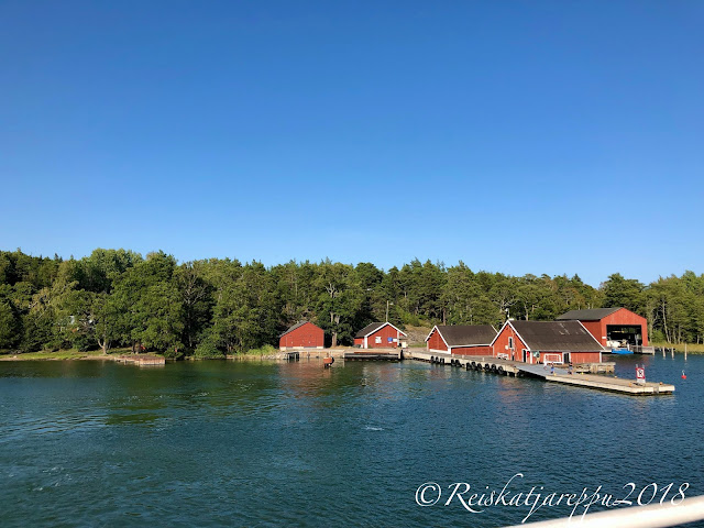 Matkalla takaisin laivarantaan nautiskelimme kesäisestä ilmasta ja ihastelimme saaren taloja, puita ja puiden runkoja. Muurahaisia ahkeroimassa kiireisissä touhuissaan. Me kiireettöminä hipsutellen kohti rantaa, jossa kohta jo näimme aluksen saapuvan.