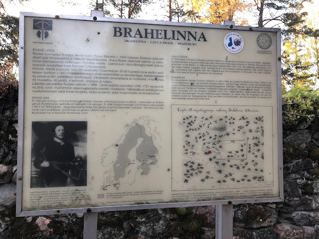 Kirkon pihalta lähdimme katsomaan Krissen bongaamaa Dunkerin kiveä. Kirkon toisella puolella kalliolla olisi ollut Suomen laivaston muistomerkki sekä Loisto, Saimaan purjehtijain muistomerkki. Myös tien päässä oli harmaa, hirsinen Grännä-talo. Noustiin mäkeä harjulle ja siinä samalla tuli myös esille Brahelinna. Kysymyksiä taas pyöri päässä. Mikä, mikä….