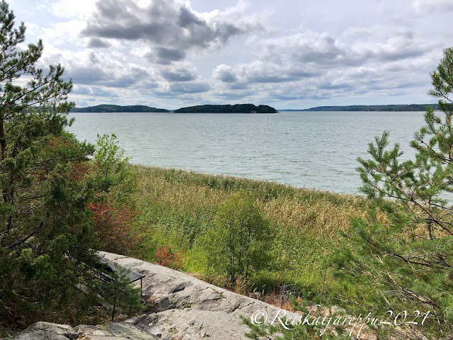 Kurvasimme kahvihampaan pakottamana heti sillan jälkeen olevalle p-paikalle. Olisi siellä jätskiäkin myyty, mutta ei herkkuja mahan täydeltä. Tyydyimme omiin eväisiimme. Ja ihailimme merimaisemaa.