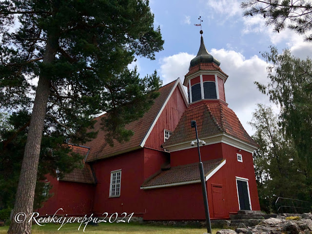 Edellistä retkeä eli edellisen päivän retkeä vaivasi kostea ilma, mutta nyt paistoi aurinko. Ilma oli niin sopiva reissulle kun vain voi olla, mukavan lämmin liikkumiseen, ei liian kuuma. Ajettiin Halikon kautta kuten edellisenä päivänä, mutta menimme Kokkilan lossin kautta Angelniemen kirkolle. Kirkko sijaitsee kauniilla paikalla meren äärellä, että siellä voi penkillä istuskella ja tuijottaa meren jatkuvaa liikehdintää.