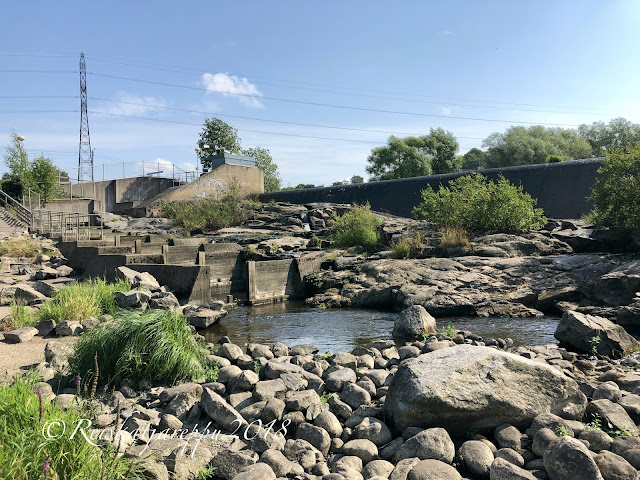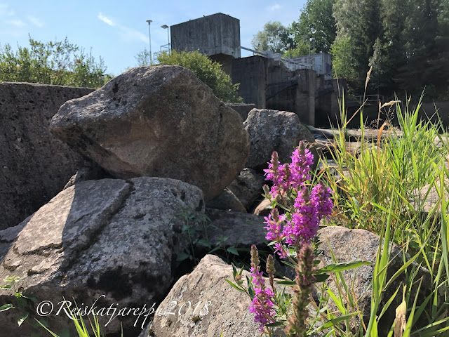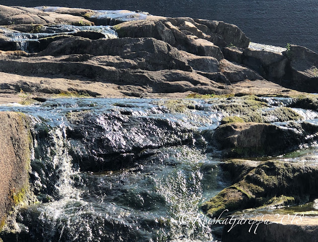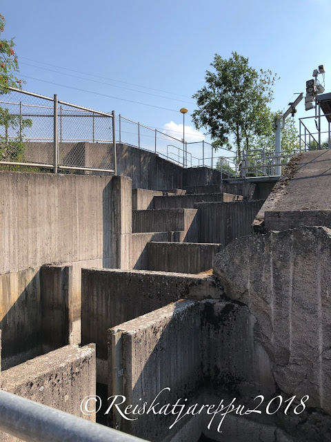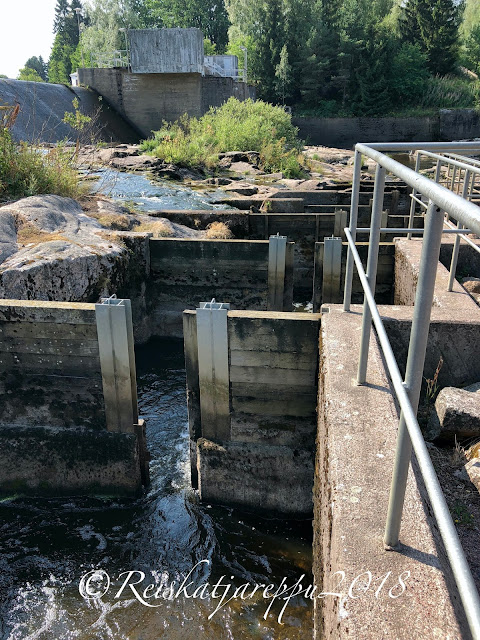 Tämä oli hienon näköinen paikka ja vaikuttavat rakennelmat. Heinäkuisena aikana veden pinta oli matalalla. Emme nähneet kosken kuohuja, mutta toisaalta rakenteet näkyivät hienosti.