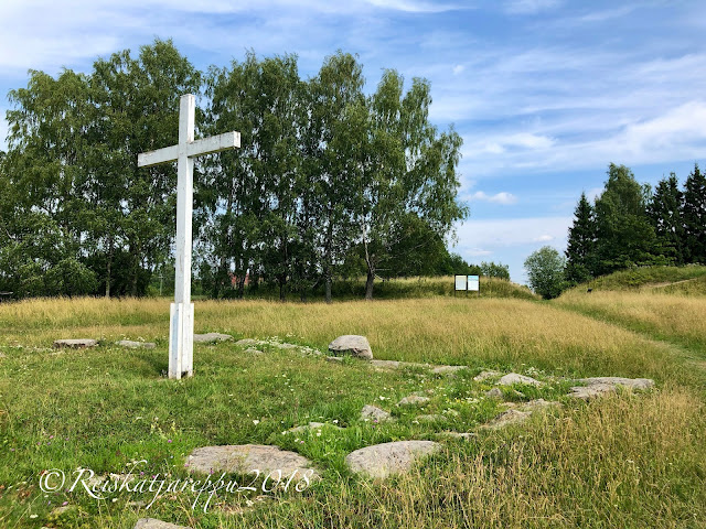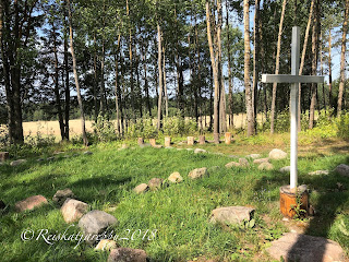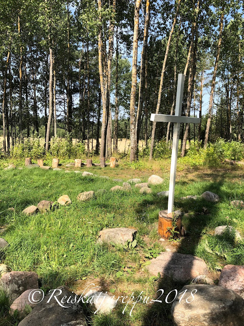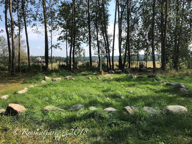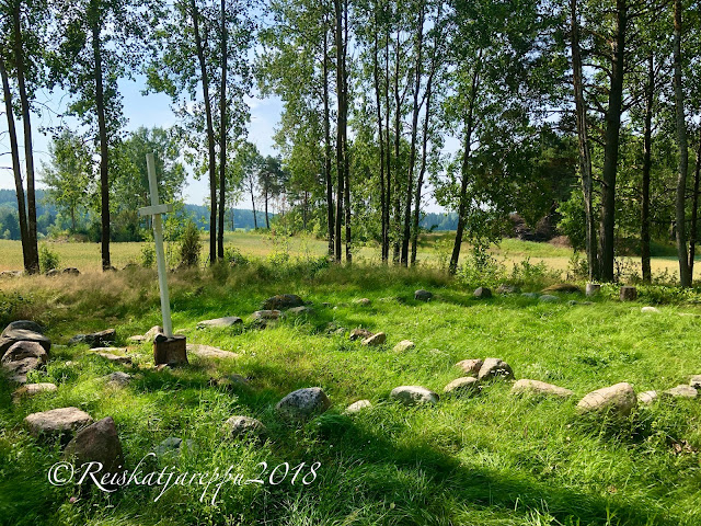 Se on aina vähän jännää kävellä toisten mailla, varsinkin kun me tämä vaan bongattiin ja emme löytäneet mitään tietoa pysäköintipaikoista tms. Me menimme paikalle googlen avulla. Hieno hetki on saapua historialliselle paikalle, vaikka paikalla sitä historiaa ei ole niin paljoa näkyvillä. Tieto jo siitä, että tässä on ollut ”pyhä” paikka, kirkko ja hautausmaa saa olon hartaaksi. Hautausmaalla on todettu olevan noin 300 hautaa, niistä 50 hautaa on todettu olleen jo ennen kirkon rakentamista.