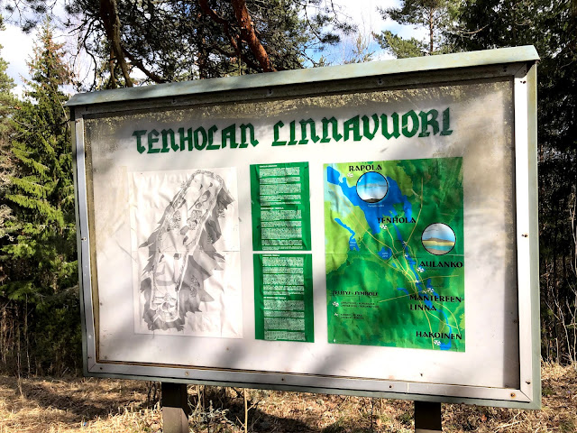 Uudenmaan sulun jälkeen rajat aukesivat ja pääsimme vapaasti kulkemaan Hämeen puolelle. Kohteena oli meillä Tenholan linnavuori, mutta ensiksi piipahdimme Hattulan vanhalla kirkolla. Naakat narisivat meille kävellessämme kirkon ympäri ja kuvatessamme kirkkoa auringon häikäistessä silmiämme. Miten se keväinen aurinko voikaan olla niin kirkas, että vaikka kuinka silmiä sirittää, ei auta. Ihmettelette, missä aurinkolasit, no ne jäi autoon, kun vaistomaisesti ne ottaa pois, kun auto pysähtyy.