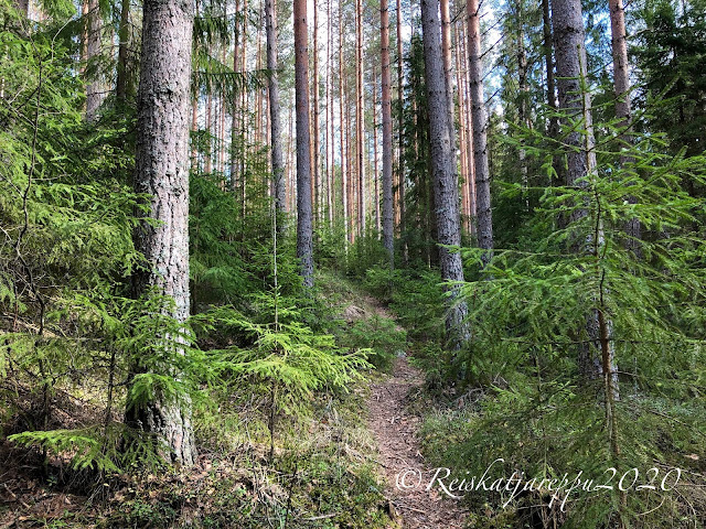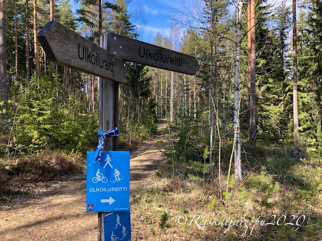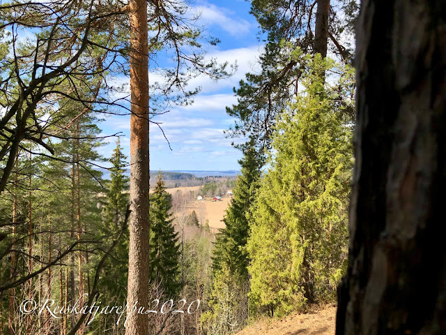 Läpi metsikön, hiekkatietä pitkin kävelimme kohti keväisessä metsässä, missä lintujen konsertti saattoi meidät yhteen luonnon kanssa. Ei liikenteen melua, ei ihmisiä, vain luonto ja me. Ja sitruunaperhonen, meidän oppaamme. Se kulki pitkän matkan meidän kanssamme, kunnes varmaan tylsistyi meidän seuraamme ja kävi levähtämään metsän pedille. Välillä olimme vähän hukassa ja luulimme olevamme vuoren juurella ja lähdimme polkua pitkin ylös mäelle. Siellä oli ihmisiä, niin oletimme olevamme oikealla paikalla.