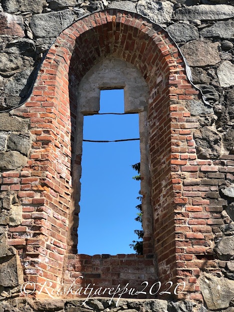 Aurinkoinen, suorastaan helteinen ilma oli osanamme tällä kertaa saavuttuamme kivan näköisen Pälkäneen kylän läpi kohti kirkon raunioita. Mukava on matkustaa ilmastoidussa autossa, muttei niin mukavaa kävellä paahteisessa, tuulettomassa säässä kirkon raunioita kierrellen. Itse toki Krissen kanssa olimme valinneet meille tämän päivän reissullemme. Kirkon rauniot seisoivat pellon laidalla vilkkaan Lahdentien vieressä Onkkaalaan kylässä, uljaana muistuttamassa menneistä ajoista.