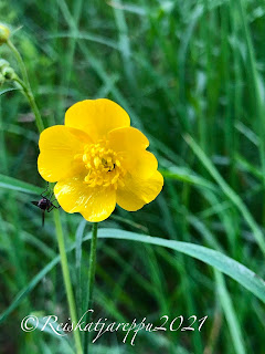 Alkukesän vihreys on niin viehkoa ja lintujen konsertit mukavia kuunneltavia. Ainut, kun katsoi tuota vihreää heinää polun varressa, väkisin miettii montako pirulaista eli punkkia siellä vaani meidän meheviä verivarastoja. Onneksi oli metsässä muuta mukavaa katseltavaa. Reikä puussa, kurkittiin, mutta ei ollut ketään kotona. Pieni puronen, joka solisi kaatuneen puun juurella. Silmänsä kun auki pitää voi nähdä vaikka mitä kivaa.