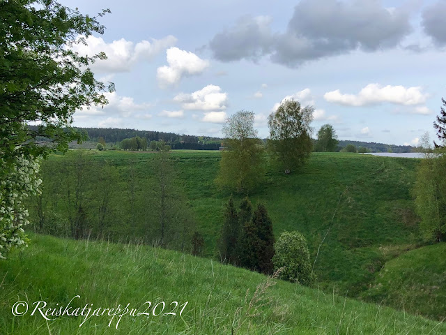 Piipahdettiin ekana Uskelanjoen entisellä kirkolla, siellä missä on vaan tapuli pystyssä. On vaan niin hienot näkymät Uskelanjokilaaksoon. Vielä hienompi, kun näkymää oli avattu puiden ja risujen poiston takia. Tietyt paikat ovat aina yhtä hienoja.